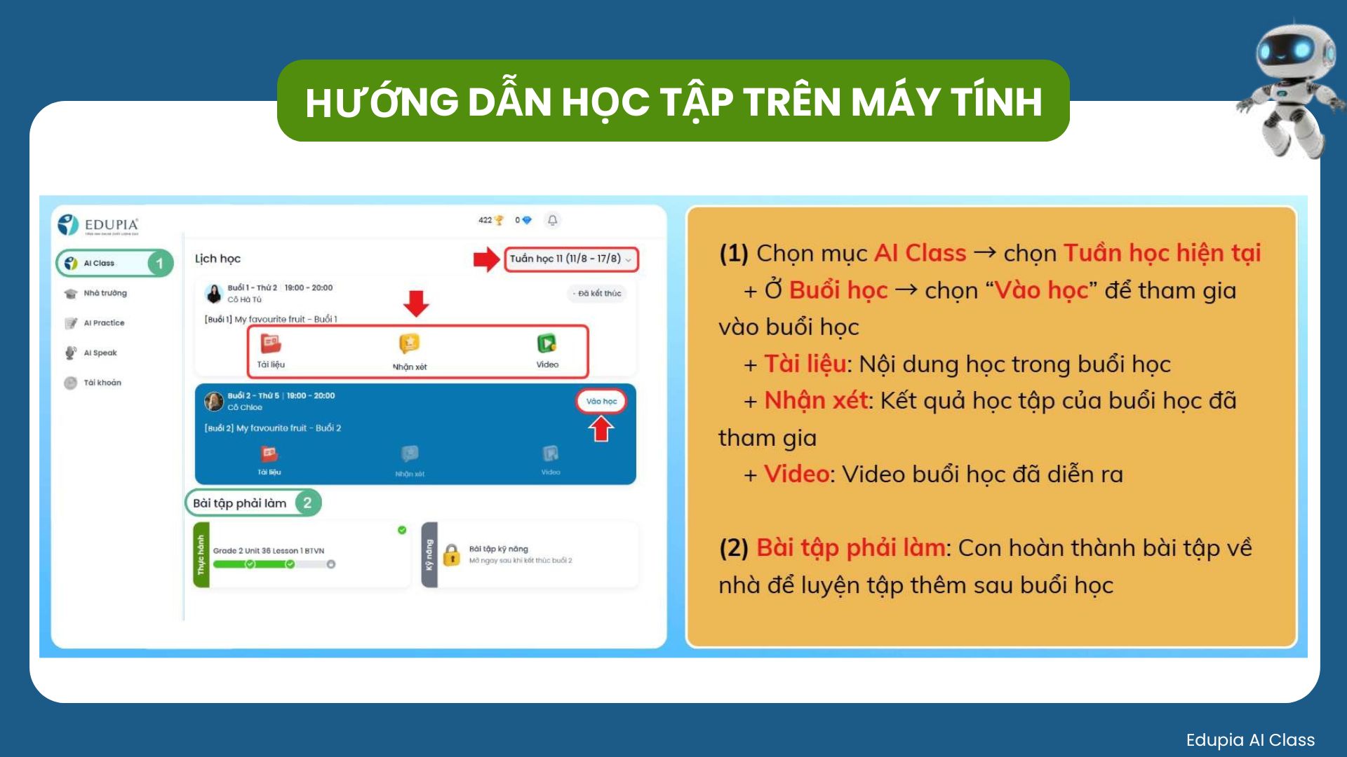 HƯỚNG DẪN HỌC TẬP TRÊN EDUPIA AI CLASS