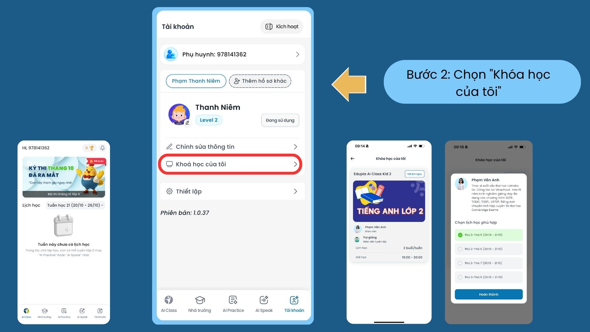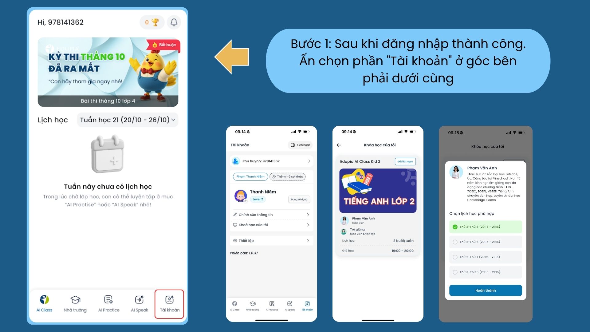 1. Hướng dẫn chọn lịch học trên điện thoại